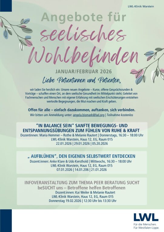 Passend zu diesem Motto bieten wir wieder neue Kurse an für Ihre seelische Gesundheit. Unsere Kurse unterstützen dabei, zur Ruhe zu kommen, neue Kraft zu schöpfen und wieder in Verbindung mit sich selbst zu treten